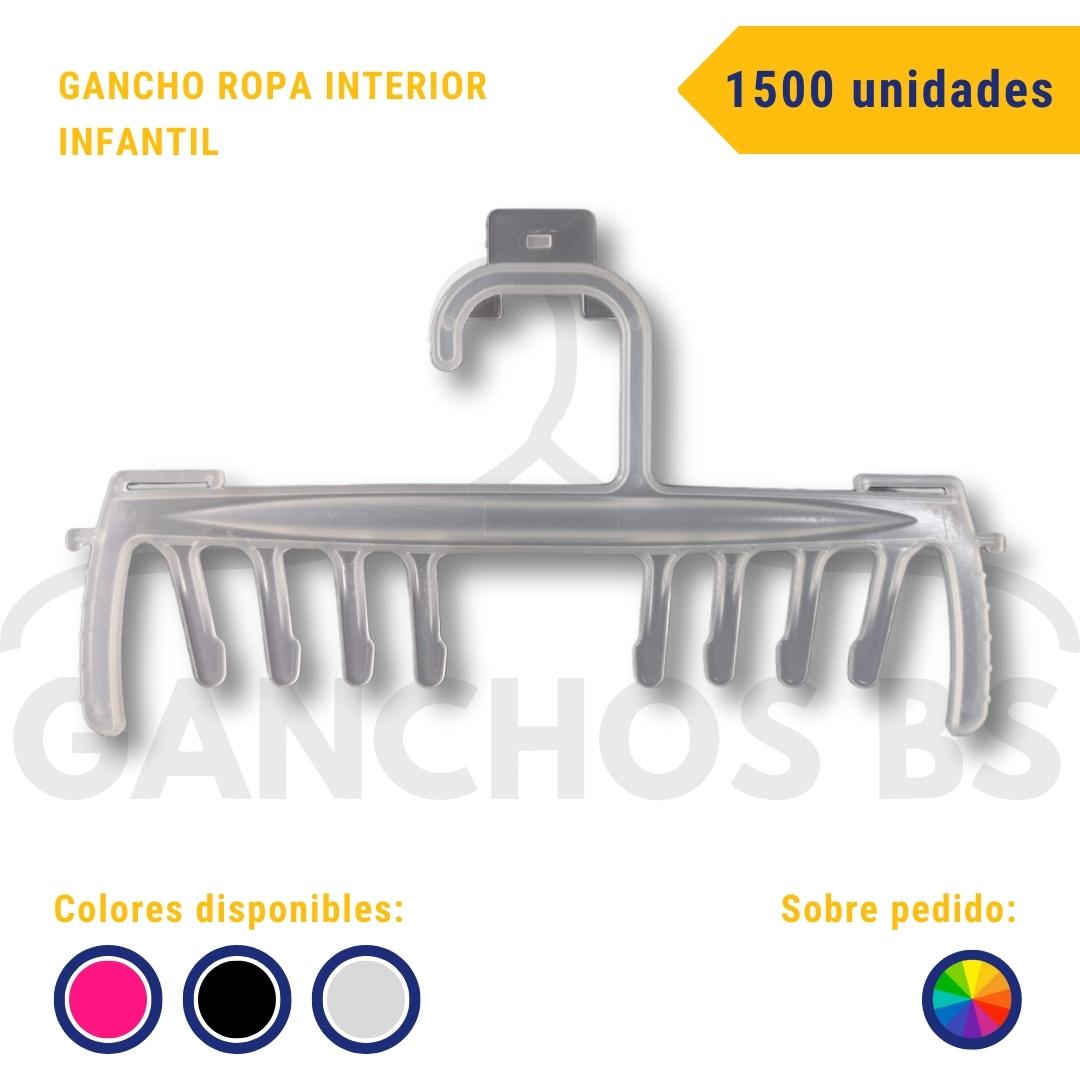 Gancho ideal para colgar toda clase de prendas íntimas infantiles como boxer, panty, brasier, prendas deportivas, y ropa interior en general de las tallas 2 – 4 – 6 – 8.